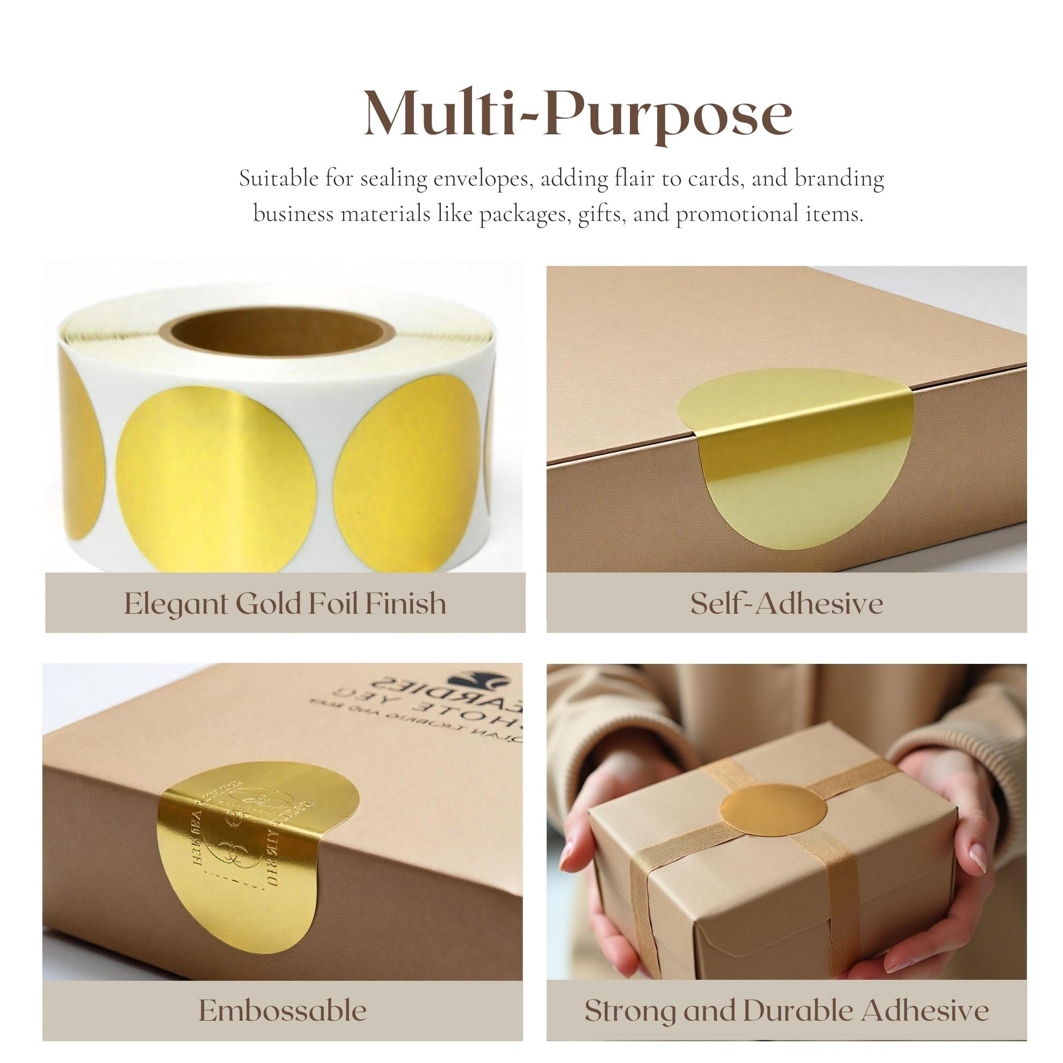 1-Inch Kraft Dot Stickers – 1000 Easy-Peel Labels per Roll – Writable, Self-Adhesive Round Labels for Organizing, Color Coding, Inventory, and Crafts (Glossy Brown)