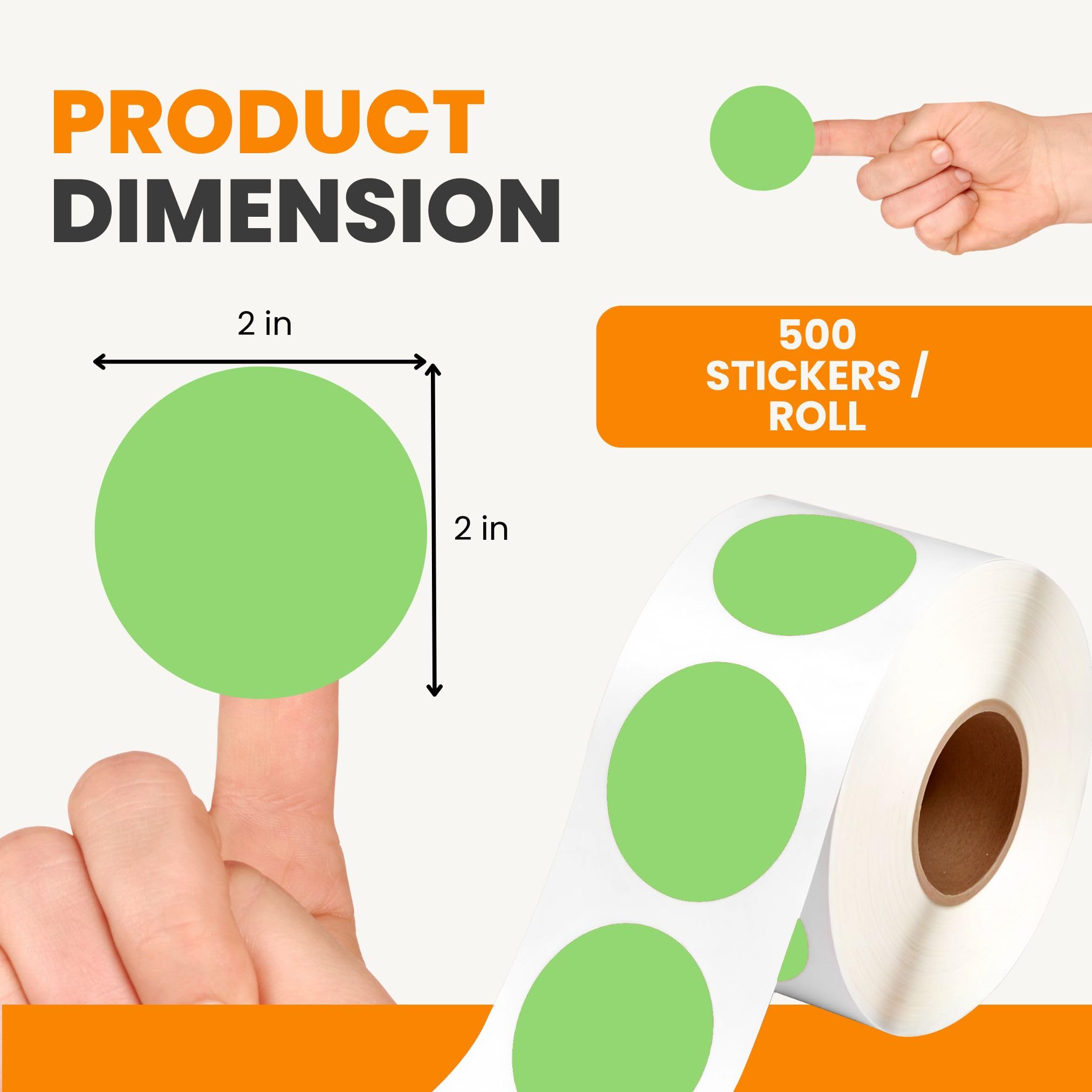 Performore 2 Inch Dot Matte Green Color Code Labels for Color Coding and Organization, Round Coloured Easy to Peel, Strong Self Adhesive Dot Stickers, 500 Stickers Per Roll—