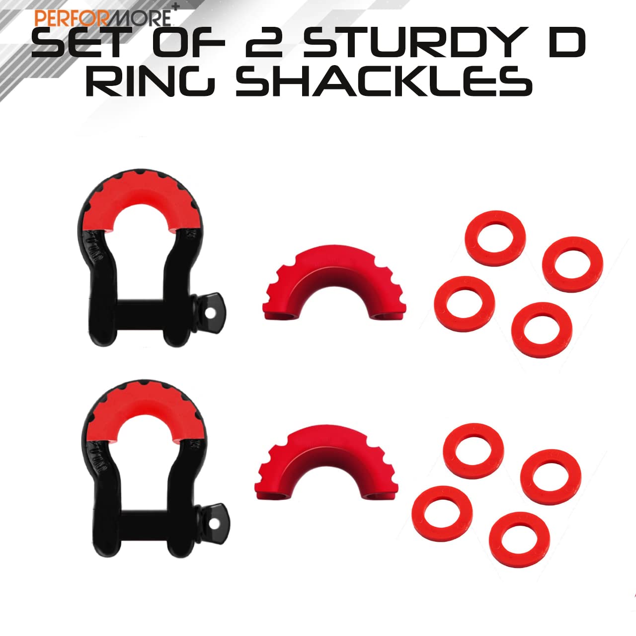 Performore 2 Pack of D-Ring Shackles Heavy Duty 4.75 Ton Capacity, 3/4 Inch, Includes Shackle and Washers with 7/8" Pins - Ideal for Jeeps, ATVs, Towing, Snatch Straps, and Trucks Recovery (Black)
