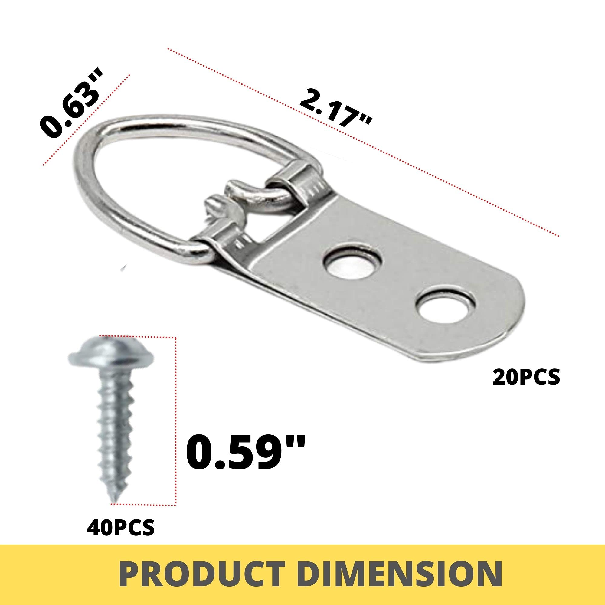 PERFORMORE 20 Pack of D-Ring Picture Hangers with 40 Screws, Heavy Duty Double Hole Frame Hanging for Frames Paintings Clock Artwork Hooks Picture Hardware