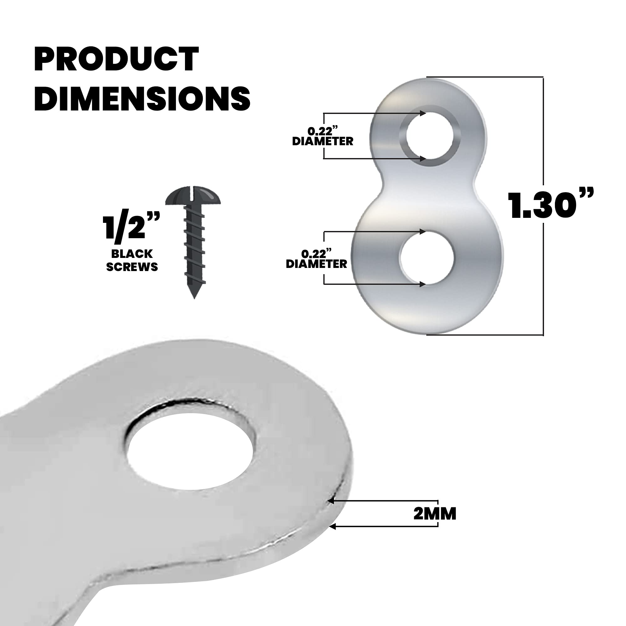 - Premium quality — These flat fasteners are shaped like two washers that got crushed in a press somewhere, ending up with a figure-eight shape. It is made with the high quality of die casting steel coated with zinc for rusting and corrosion resistance. Nickel screws are included.