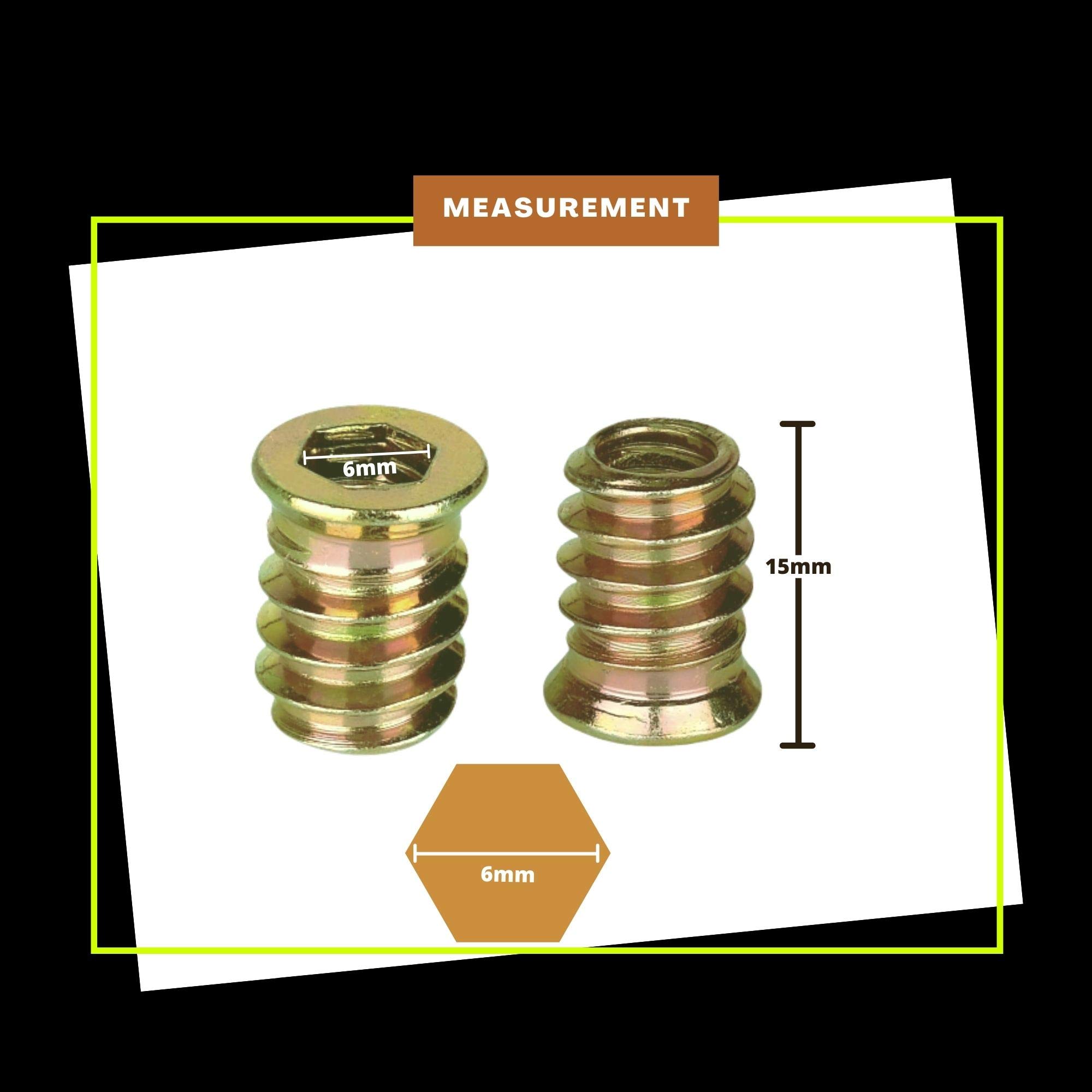 Performore - 50 Pieces Threaded Wood Inserts, 1/4"-20 x 15mm Furniture Screws in Nut Threaded Inserts with Hex Socket, Zinc Plated - for Wooden Furnitures, Products, & Model, One Allen Wrench Included