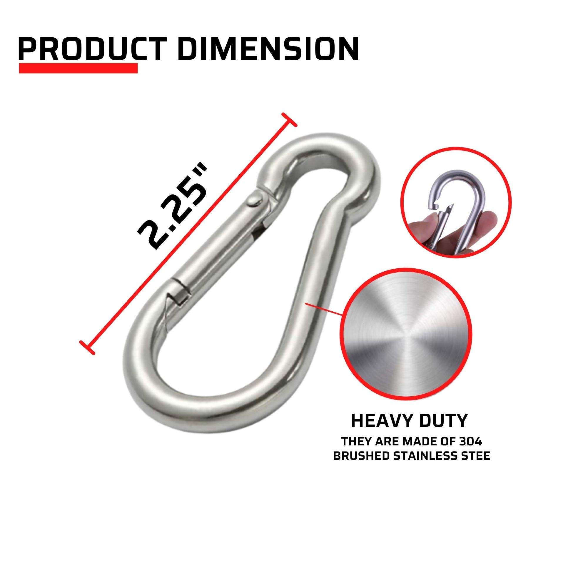 - Durable & Long-lasting — Our premium snap hooks are built to last! They are made of 304 brushed stainless steel which is rust-resistant and corrosion-resistant. We can ensure the toughness and reliability of our carabiner snap hooks.